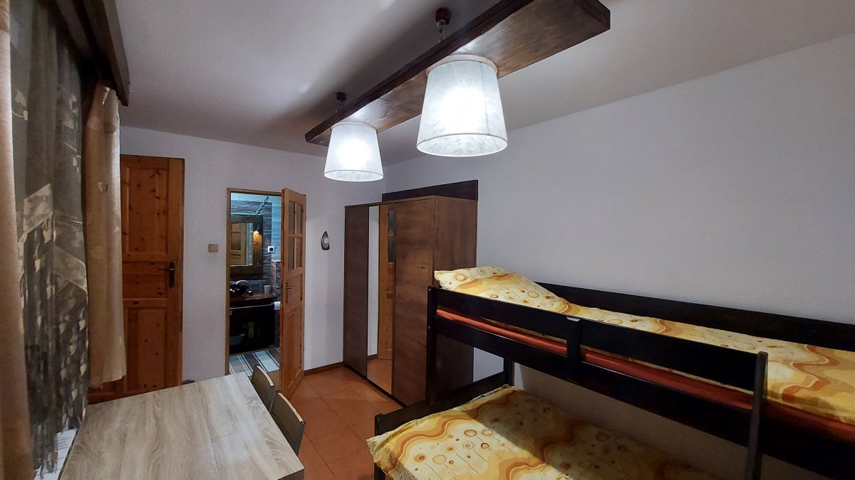 W pokoju znajduje się łóżko piętrowe (2-3 osobowe), szafa, komoda oraz stolik z krzesłami.